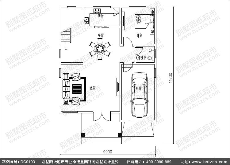 一 層:客廳、臥室、廚房、餐廳、衛(wèi)生間、車庫