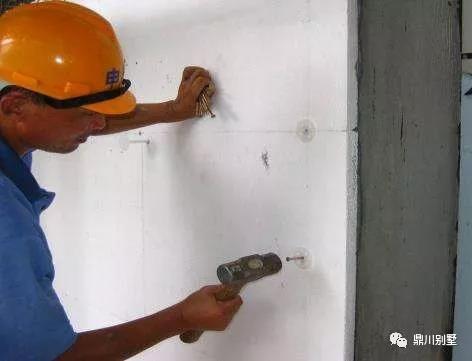 當粘結砂漿凝固后,農民用電錘在泡沫板表面向內打孔,孔徑視錨固件直徑而定,進墻深度不得超過磚墻厚度的三分之二。擰入或敲入錨固釘,釘頭和圓盤不得超出板面。