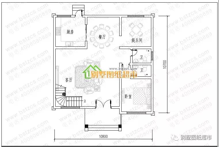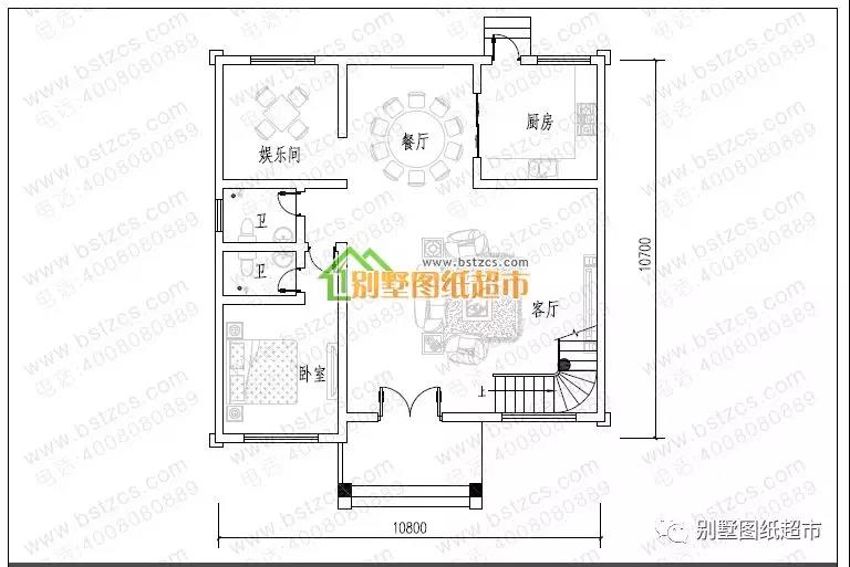 此款別墅圖紙編號(hào): DC0085,二層建筑,結(jié)構(gòu)形式為磚混結(jié)構(gòu),開(kāi)間10.8米,進(jìn)深10.7米,占地面積116.4平方米,建筑面積273.78平方米,主體造價(jià)22-26萬(wàn)。