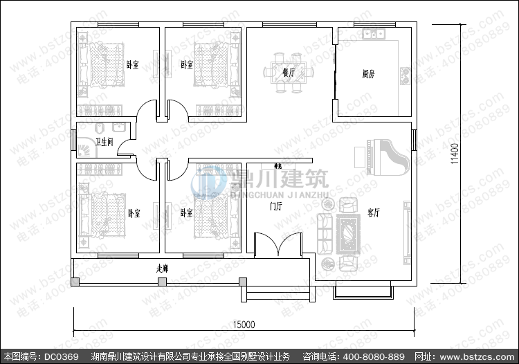 第十張:農村一層平房戶型圖紙