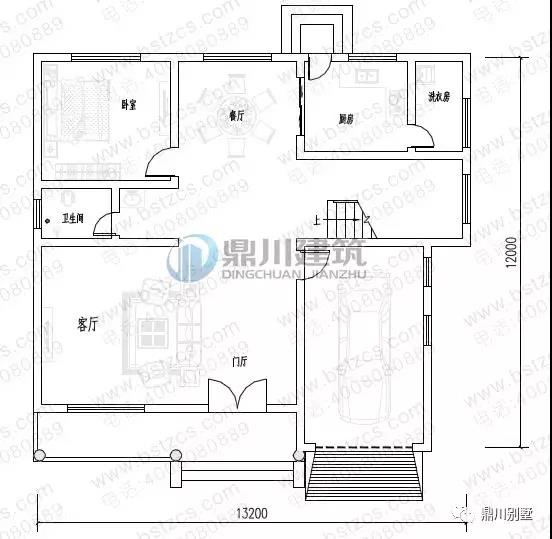 一 層: 門廳、客廳、臥室、廚房(附洗衣房)、餐廳、衛(wèi)生間、車庫