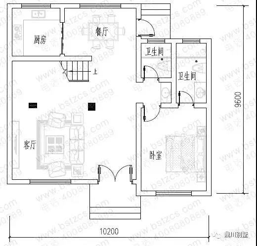 一 層: 客廳、臥室(附衛生間)、廚房、餐廳、衛生間