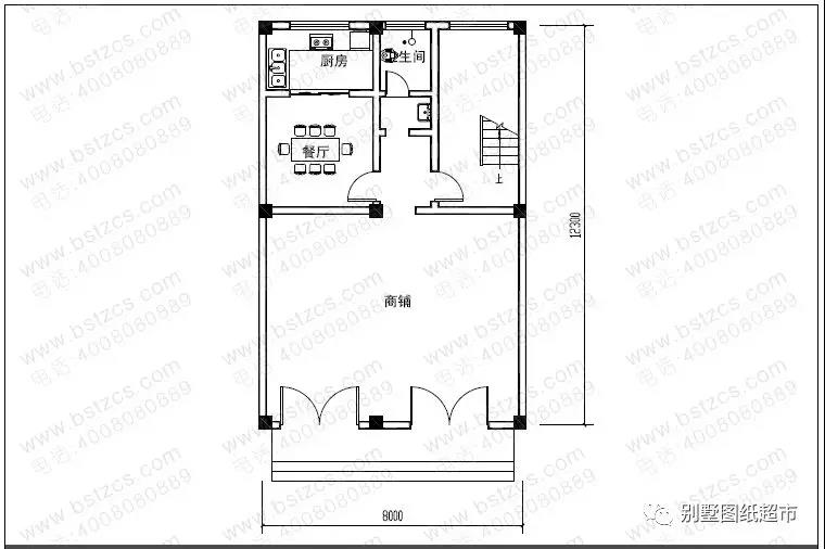 一 層:商鋪、廚房、餐廳、衛生間