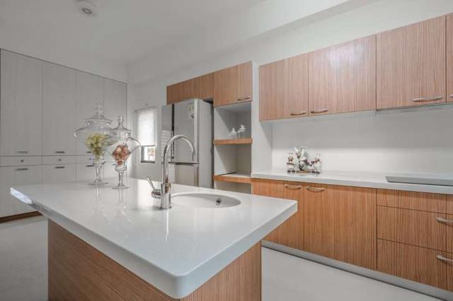 如果說你強調廚房的機能性,那么可以當作早餐吧臺使用的中島是最棒的選擇。這樣的設計對于煮飯的人來說,也更為便利,還能讓烹飪的時光更有互動性!