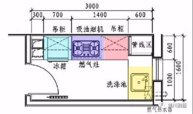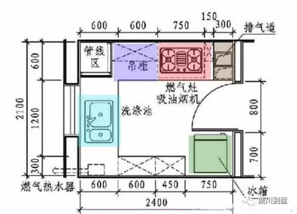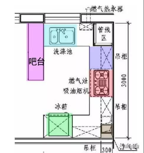 2、預(yù)留的廚房空間尺寸和形狀不同,具體布置形式也不同,實(shí)際布置時(shí)應(yīng)根據(jù)預(yù)留的空間來選擇。