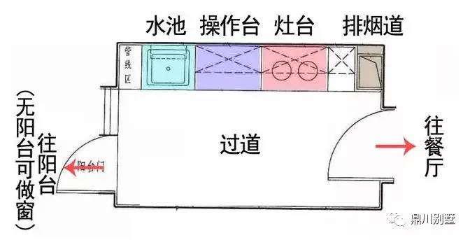 顧名思義,將灶臺(tái)、水槽、抽油煙機(jī)等廚房工作區(qū)布置在一邊。