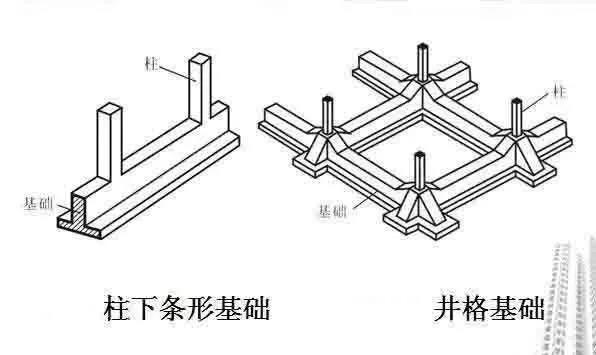 此外,根據地質的不同和土地的松軟程度,有不同的地基打法。現在我們按照構造形式可分為條形基礎、獨立基礎、.井格式基礎、樁基礎、筏形基礎和箱形基礎