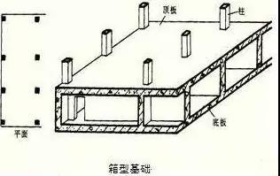 箱型基礎是指由底板、頂板、鋼筋混凝土縱橫隔墻構成的整體現澆鋼筋混凝土結構。