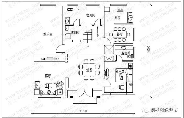 一 層:堂屋、客廳、老人房(附衛生間)、娛樂室、廚房、餐廳、農具間、衛生間