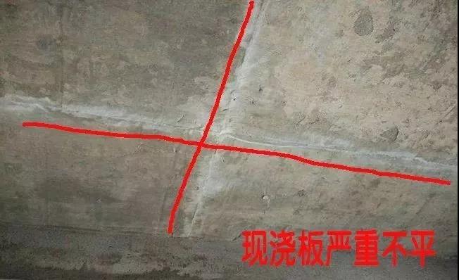 3、現澆樓板底面不平、中部下撓、陽臺板前傾