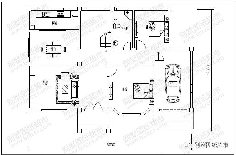 一 層:客廳、2臥室、廚房、餐廳、衛生間、車庫