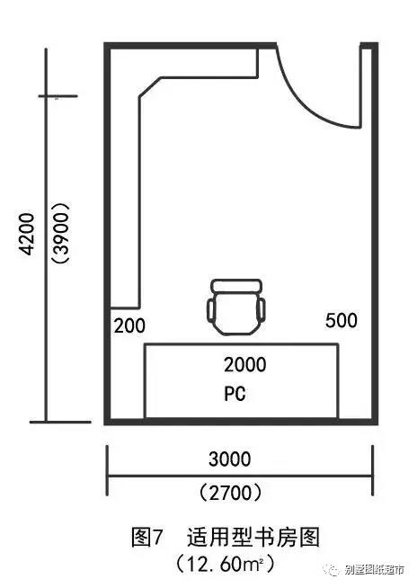 三室以上的戶型宜設置書房。因無需擺放大床( 2.2m x 2.0m)和床頭柜等家具, 所以其尺寸要求也不像臥室那樣嚴格, 具體參見圖 7