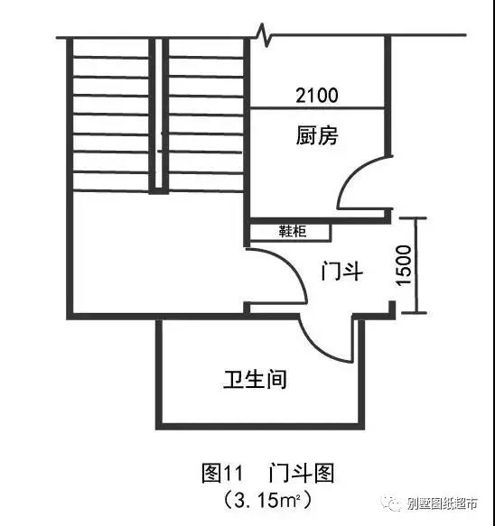 80㎡以上(不含80㎡) 套型宜設置門斗,它是進入戶內的過渡空間,裝修時做上一個造型優美的大門套,稱之為玄關。它的開間尺寸宜為1. 5m以上,具體如圖 11 所示。門廳是戶建筑面積很大,比如160㎡以上時,方予設置的空間