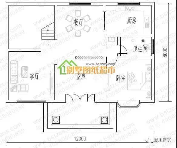 一 層:堂屋、客廳、2臥室、廚房(兼餐廳)、衛生間
