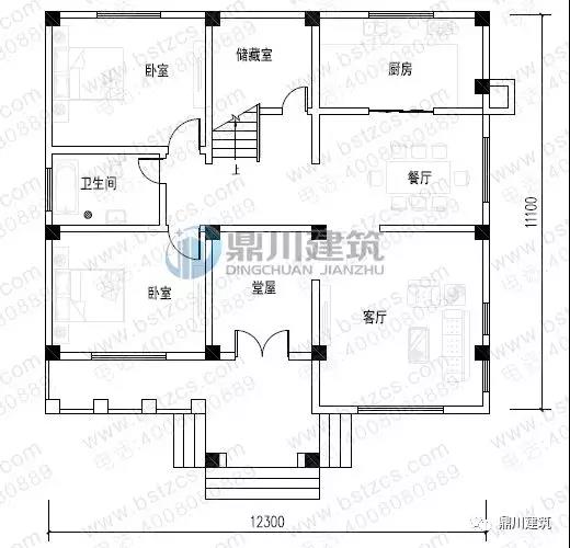 一 層: 走廊、堂屋、客廳、2臥室、廚房、餐廳、衛生間、儲藏室