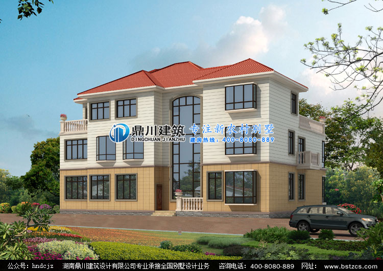 當前位置: 首頁 > 設計案例 > D012復式三層帶露臺別墅外觀效果圖,三層別墅圖紙設計