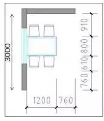 注:6~8人餐桌長1700~2000mm,寬800~1200mm,人通行寬度在760mm。