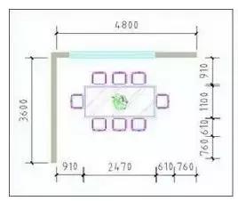 方形餐桌擺放8~10人空間,餐廳尺寸利用一般在3600mm*4800mm以上。