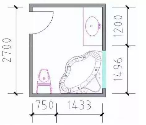 b、具體到安裝上,浴缸與對面墻之間的距離最好有1000mm,想要在周圍活動的話這是個合理的距離。