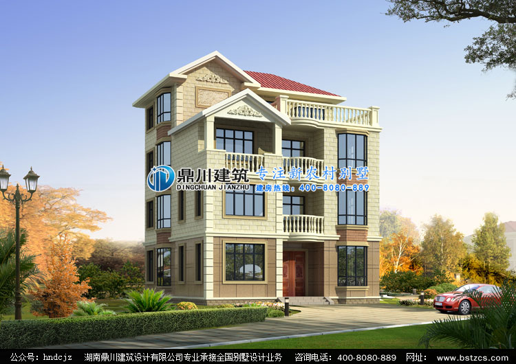 D097四層帶露臺農村自建小別墅設計圖,四層別墅外觀效果圖