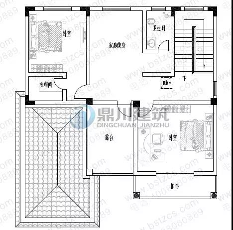 三 層: 健身廳、臥室(附衣帽間)、臥室(附陽臺)、衛生間、露臺