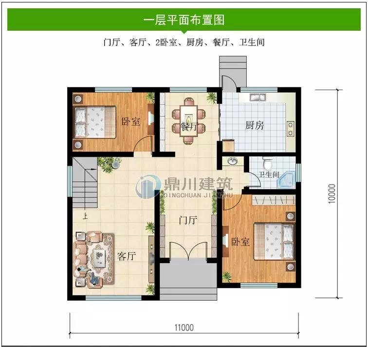 一 層:門廳、客廳、2臥室、廚房、餐廳、衛(wèi)生間