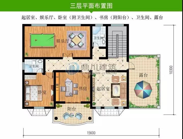 此款房子外觀十分明亮,顏色搭配得恰到好處。室內布局也簡單方便,娛樂室、露臺、書房都配備。