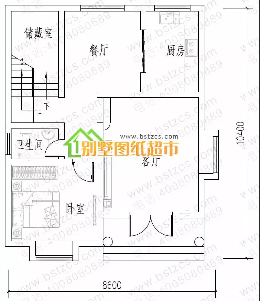 一 層:客廳、臥室、廚房、餐廳、儲藏室、衛(wèi)生間