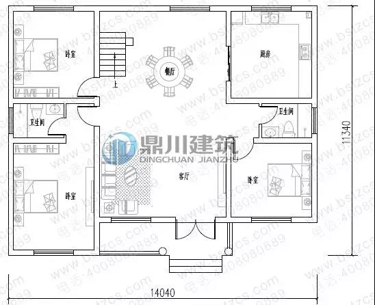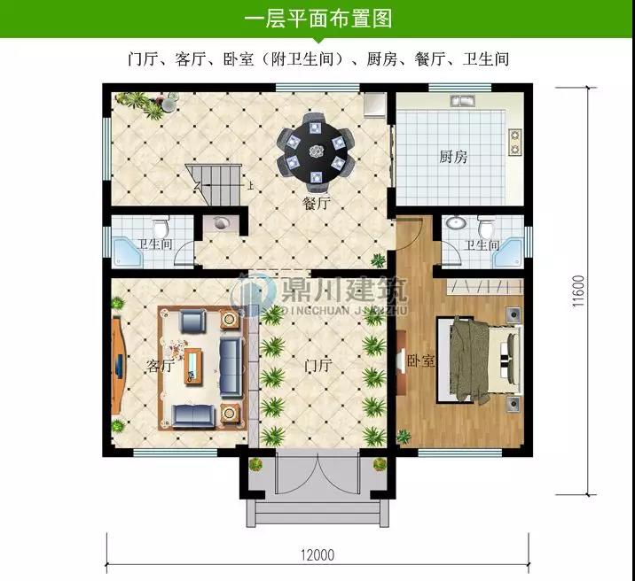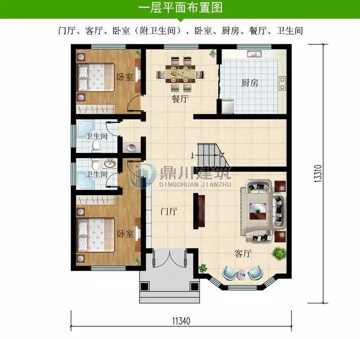 一 層:客廳、臥室(附衛生間)、臥室、廚房、餐廳、衛生間