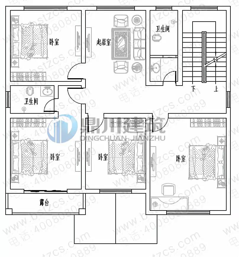 二 層:起居室、臥室(附衛(wèi)生間,露臺)、3臥室、衛(wèi)生間