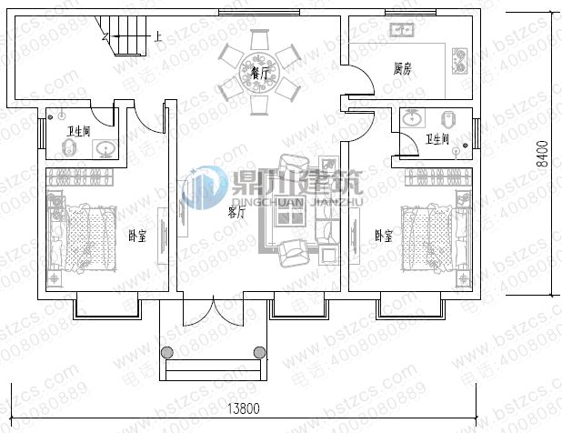 一 層:客廳、臥室(附衛(wèi)生間)、廚房、餐廳、衛(wèi)生間