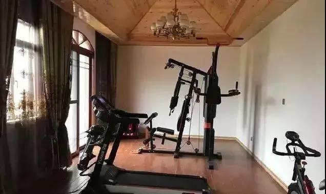 閣樓還做成一個(gè)健身房,里面有很多的健身器材,在農(nóng)村生活也不比城里差。