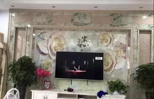 電視機(jī)背景墻也是一副富貴的花樣,代表著很好的寓意。