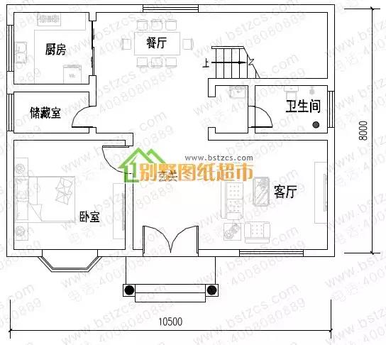 這款圖紙編號(hào): DC0273,磚混結(jié)構(gòu),主體造價(jià)為16-20萬(wàn),開(kāi)間10.5米,進(jìn)深8米,占地面積88.5平方米,建筑面積204.82平方米。