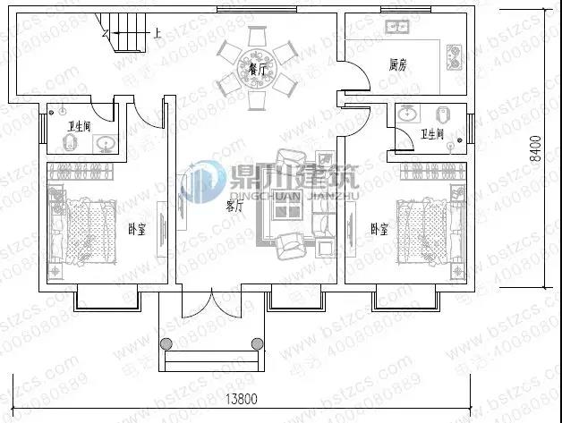 這款圖紙編號(hào): DC0324,磚混結(jié)構(gòu),主體造價(jià)為22-26萬(wàn),開(kāi)間13.8米,進(jìn)深8.4米,占地面積116.18平方米,建筑面積268.86平方米。