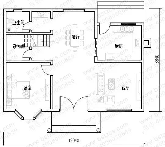 這款圖紙編號(hào): DC0239,磚混結(jié)構(gòu),主體造價(jià)為18-24萬(wàn),開(kāi)間12.04米,進(jìn)深8.84米,占地面積103.4平方米,建筑面積206.79平方米。