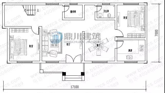 這款圖紙編號(hào): DC0342,磚混結(jié)構(gòu),主體造價(jià)為20-25萬(wàn),開(kāi)間17.1米,進(jìn)深7米,占地面積123.02平方米,建筑面積260.93平方米。