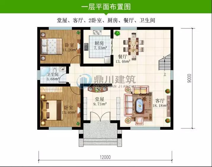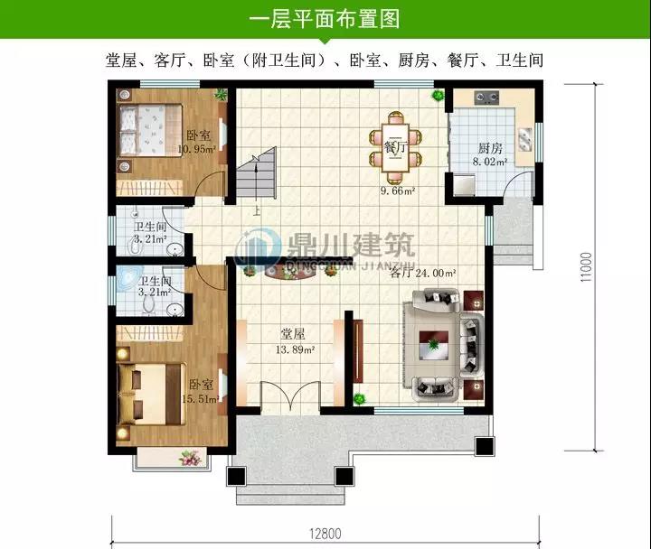 ■一層設(shè)有堂屋、客廳、餐廳、帶獨(dú)衛(wèi)的臥室,廚房連通戶(hù)外,方便進(jìn)出。