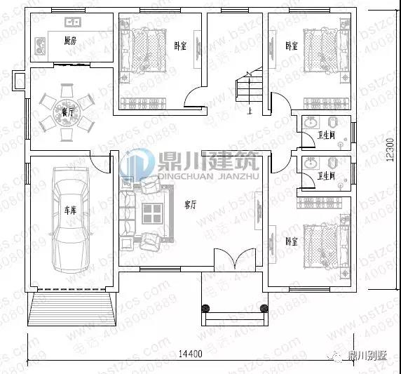 一 層:客廳、臥室(附衛(wèi)生間)、2臥室、廚房、餐廳、衛(wèi)生間、車庫