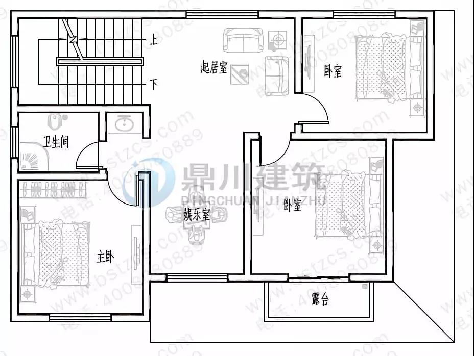 二 層:起居室、娛樂室、臥室(附陽臺)、臥室、衛生間、露臺
