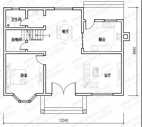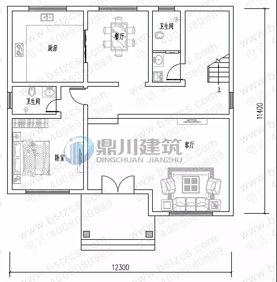 一 層:客廳、臥室(附衛生間)、廚房、餐廳、衛生間