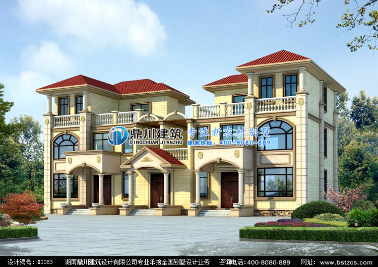 XT083歐式三層雙拼別墅設(shè)計(jì)圖外觀效果圖,鼎川建筑三層雙拼別墅圖紙?jiān)O(shè)計(jì)