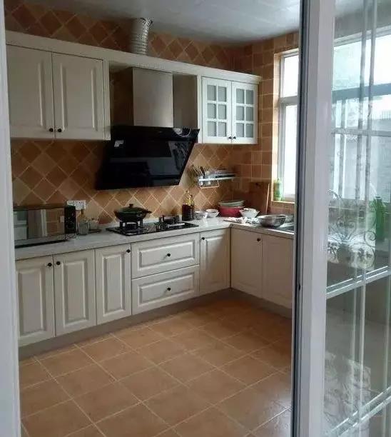 廚房裝修風格有點像美式的田園風,定制的白色櫥柜,時尚又清新,空間也非常大。