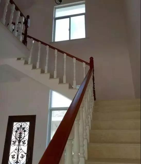 樓梯扶手的配色也是采用了整體室內裝修色調相呼應的白色和棗紅色。