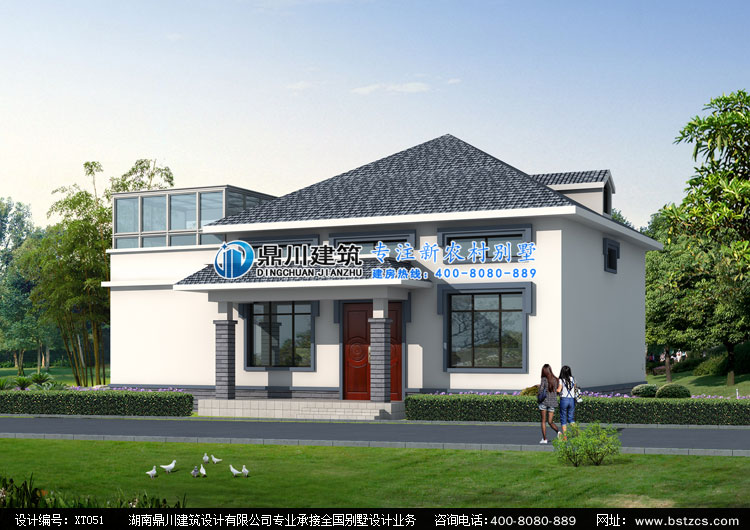 XT051一層半帶陽光房小別墅設計圖,農村二層別墅圖紙設計外觀效果圖