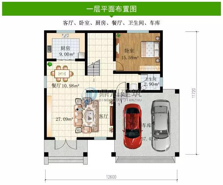 這款戶型編號: DC0391,磚混結構,開間12.6米,進深11.72米,占地面積148.82平方米,建筑面積288.73平方米,主體造價25-32萬。這個造價很經濟合算,城里房子的首付錢,普通的農村家庭都負擔的起。