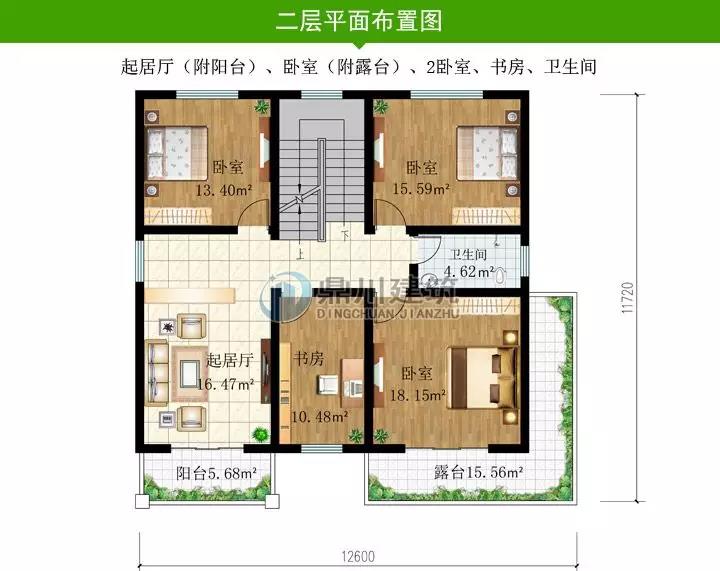 二層設有三間臥室,一個起居室和一個書房。二層也為主人的主要休息區域和家庭成員的交流區域,房子布局很規整,利用率也很高。