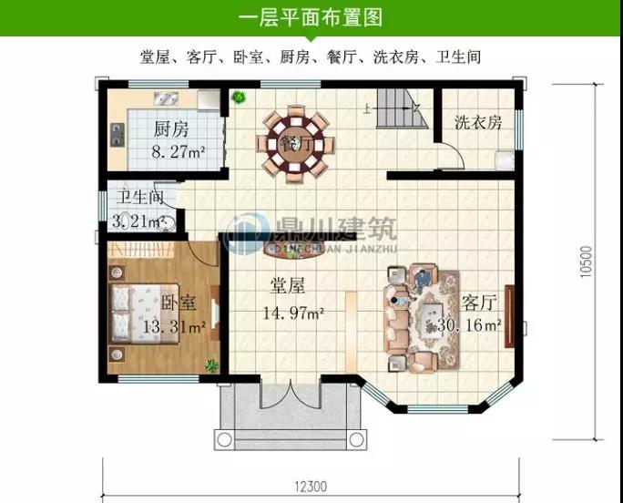 一 層: 堂屋、客廳、臥室、廚房、餐廳、洗衣房、衛生間