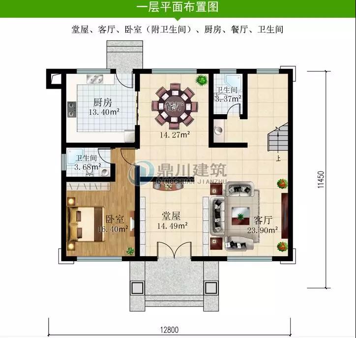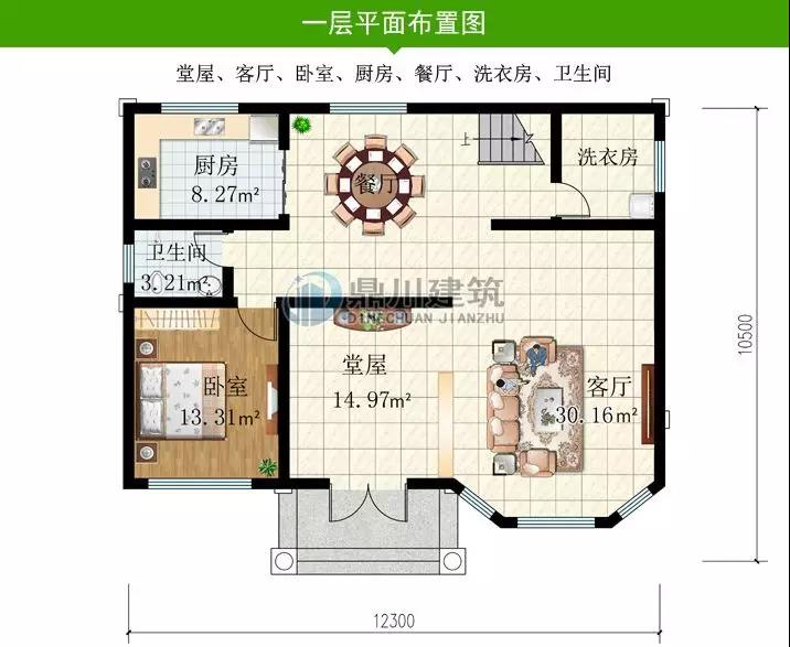 一 層: 堂屋、客廳、臥室、廚房、餐廳、洗衣房、衛(wèi)生間