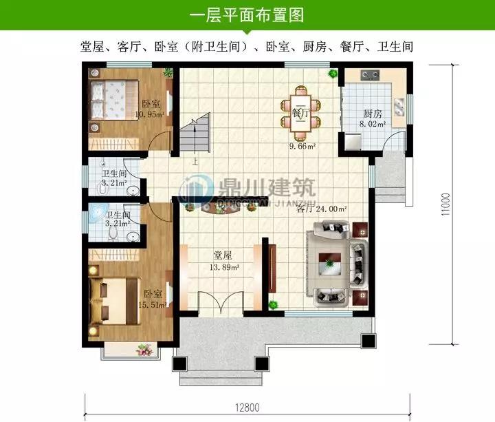 一 層: 堂屋、客廳、臥室(附衛(wèi)生間)、廚房、餐廳、衛(wèi)生間